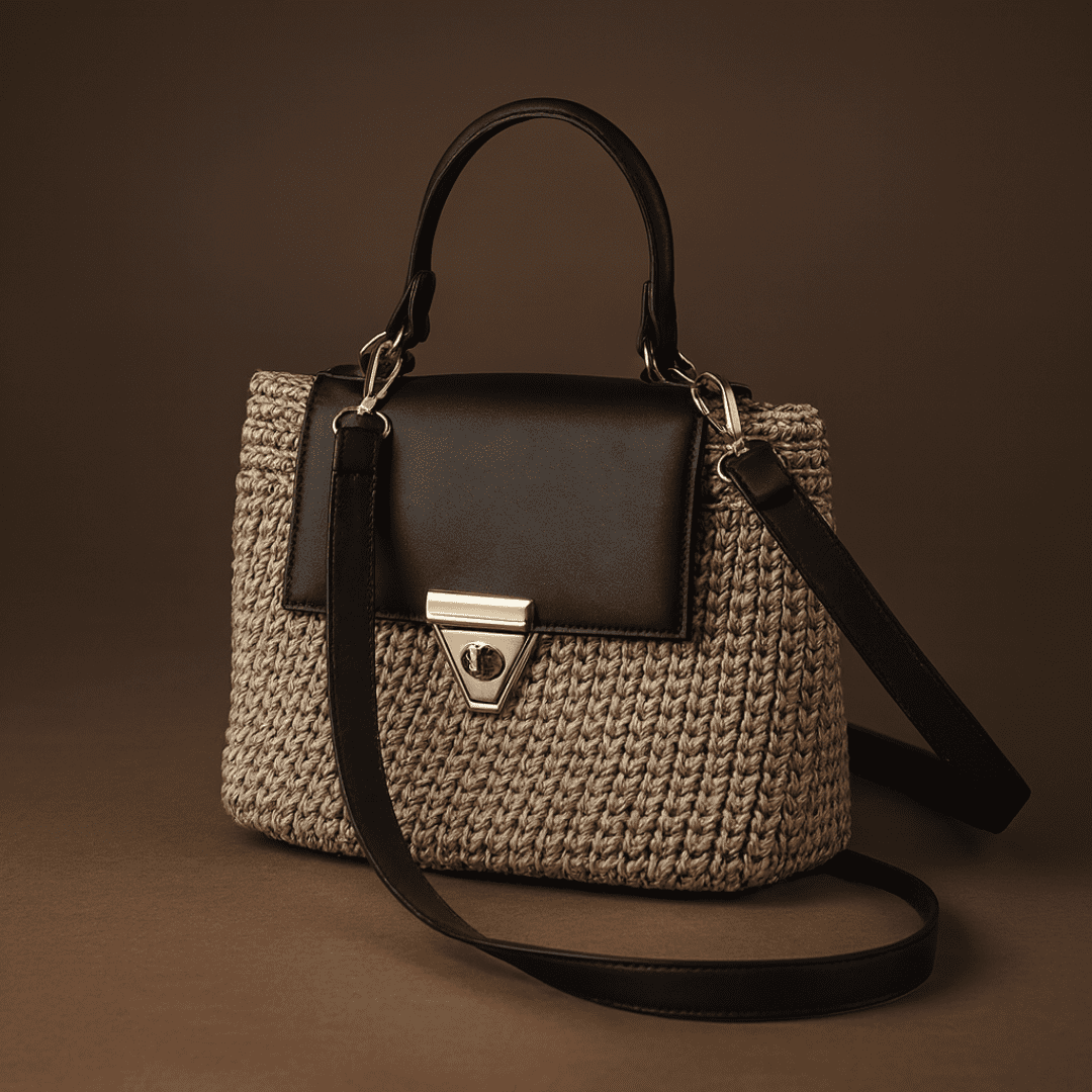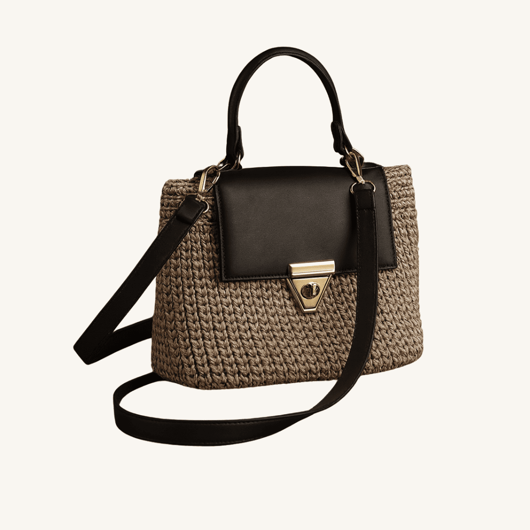 Ce sac artisanal fait main associe avec élégance le cuir véritable noir et le crochet tressé naturel pour créer un accessoire unique, à la fois moderne et intemporel. Son design raffiné, rehaussé d’un fermoir doré sophistiqué, incarne parfaitement l’esprit bohème chic.